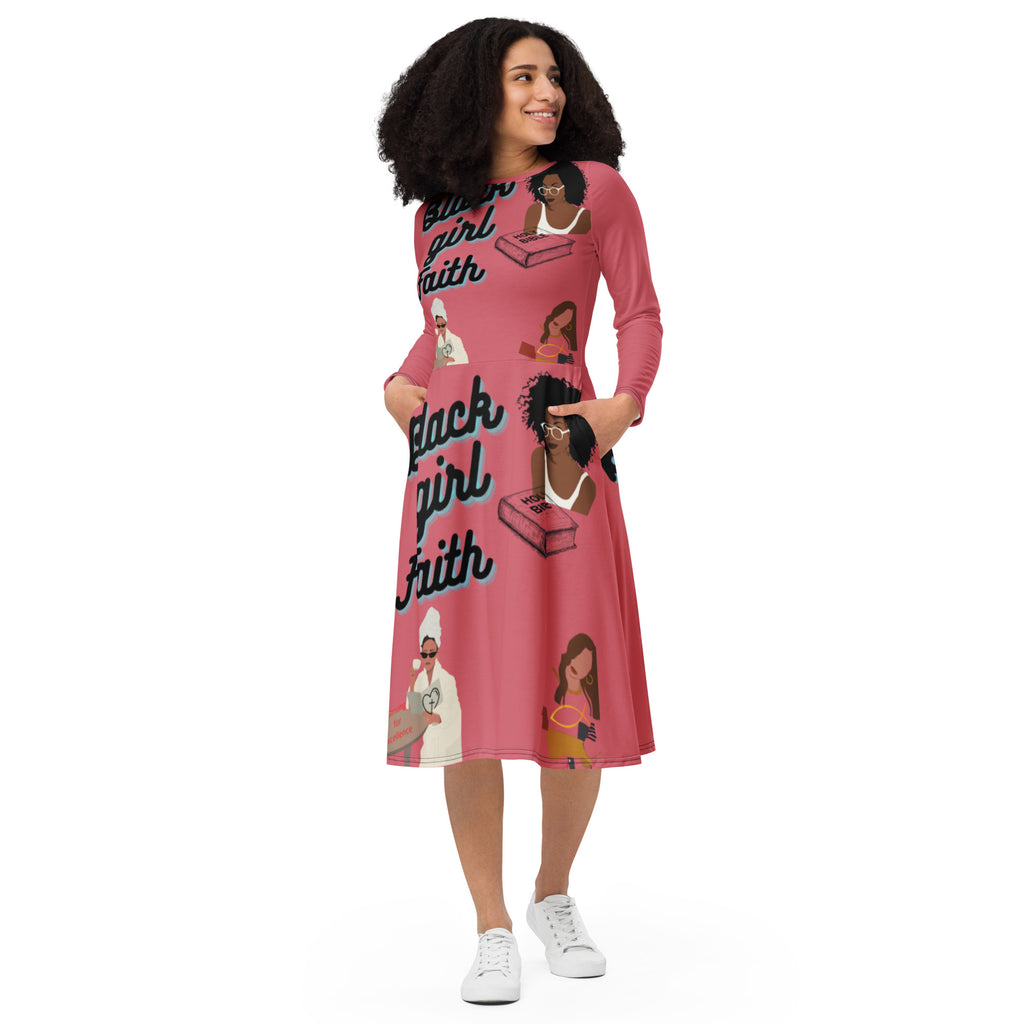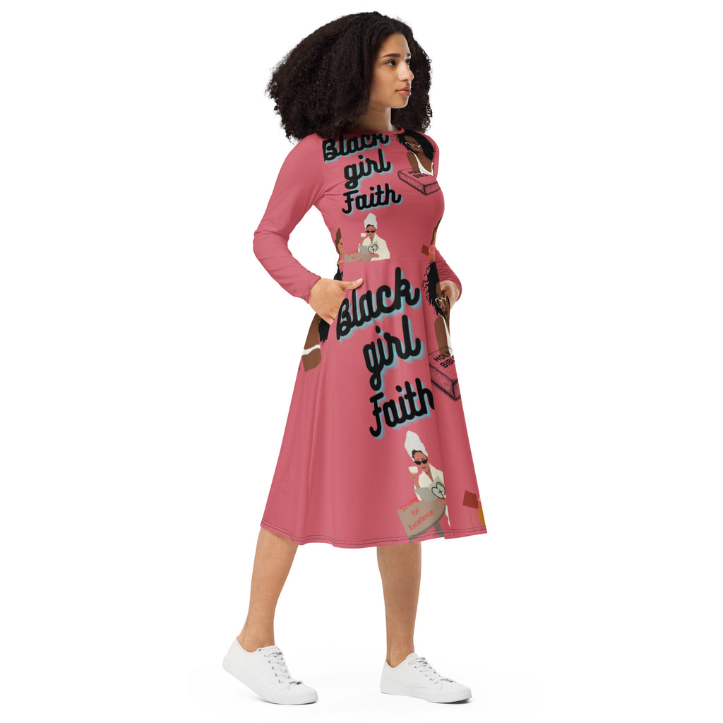 Black Girl Faith All-over print long sleeve midi dress Cabaret
